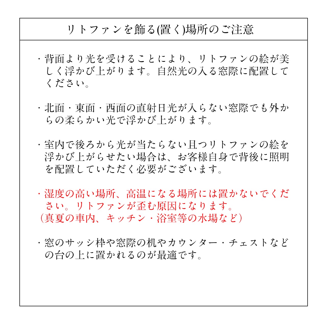 リトファンは、背面から取り外すことができますので、ガラスとリトファンの間にお手紙やメッセージ・造花などを入れるようなアレンジメントも可能です。